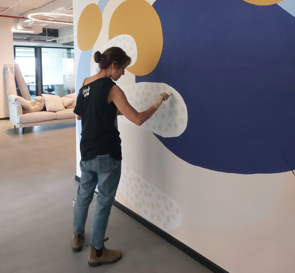 ציור על קירות במשרדי סוני החדשים